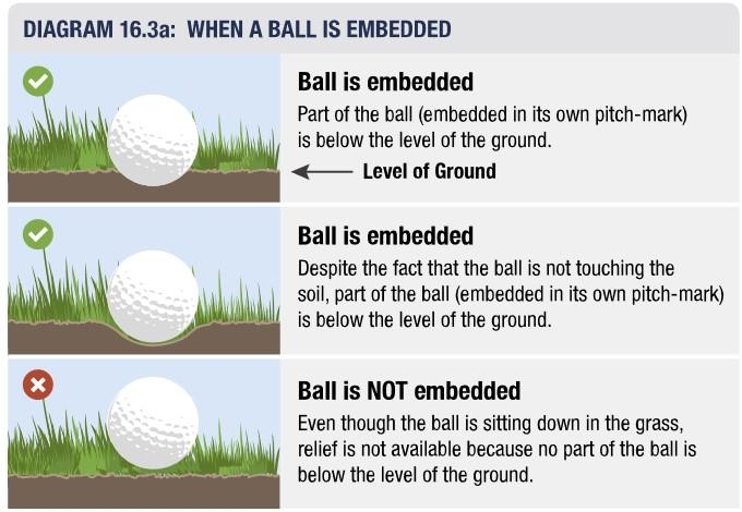 Tuy nhiên, có một số điểm lưu ý đối với luật bóng lún. Bạn sẽ không được giải thoát không phạt nếu bóng của bạn bị lún dưới cát thuộc khu vực chung cạnh fairway. Và nếu bóng của bạn bị lún ở khu vực bóng không thể đánh được, bạn cũng không được phép giải thoát không phạt. Ví dụ: nếu bóng của bạt bị lún sâu trong một bụi rậm, bạn sẽ phải thông báo bóng không đánh được và tốn 1 gậy để thực hiện giải thoát.